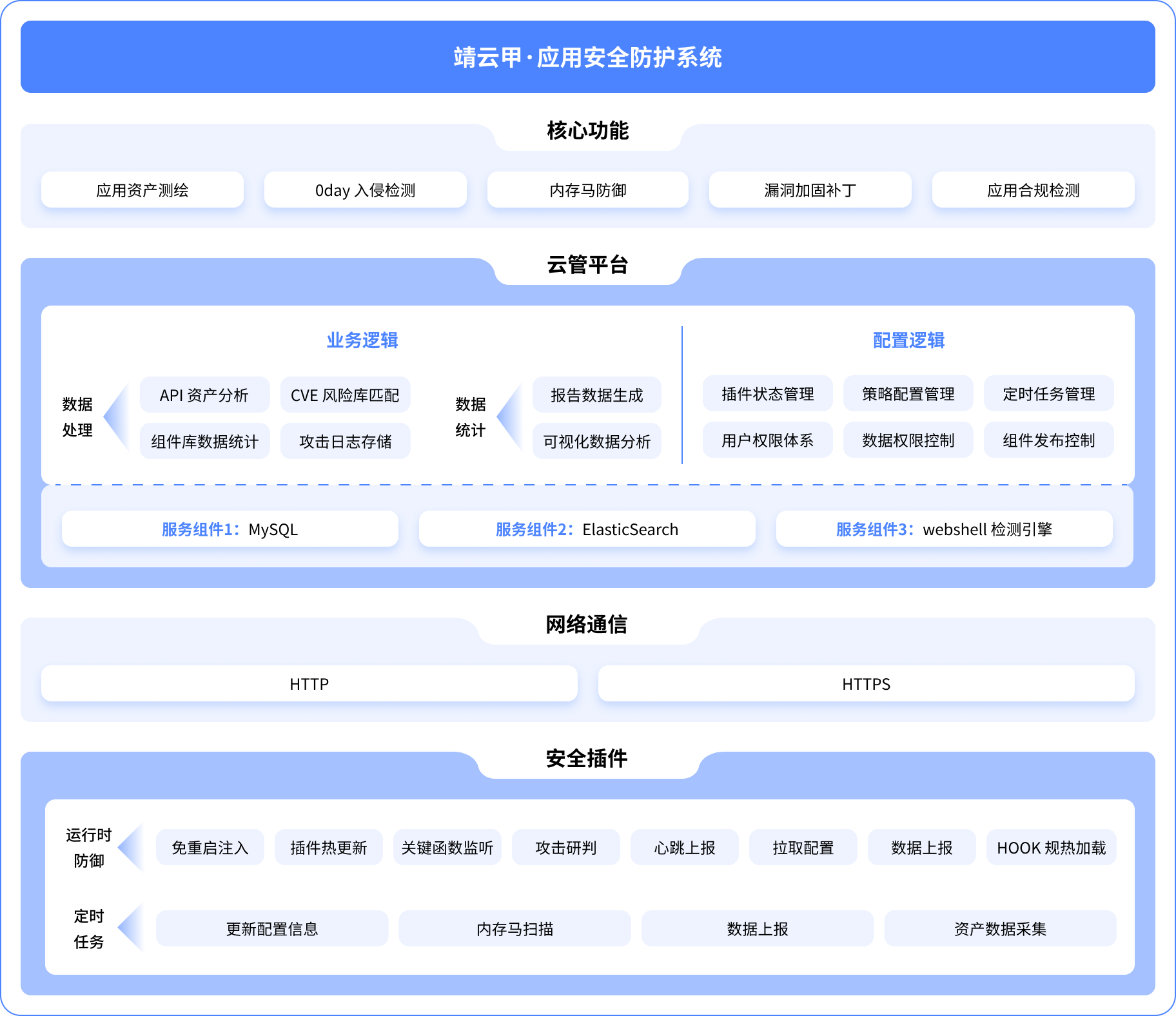 靖云甲RASP基于云原生场景设计顶层架构,实时精准采集应用资产、组件库资产等信息,消除资产盲区,实现资产有效管理,让安全防护覆盖到资产的每一个角落。